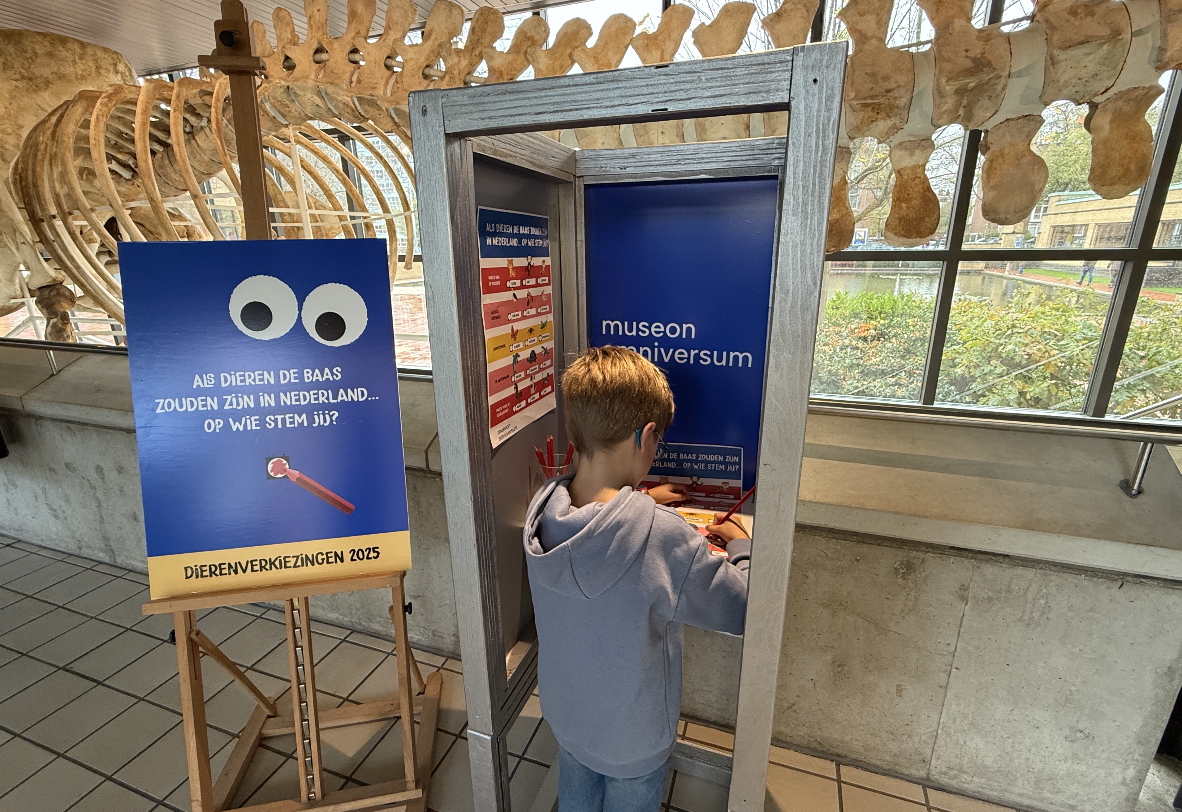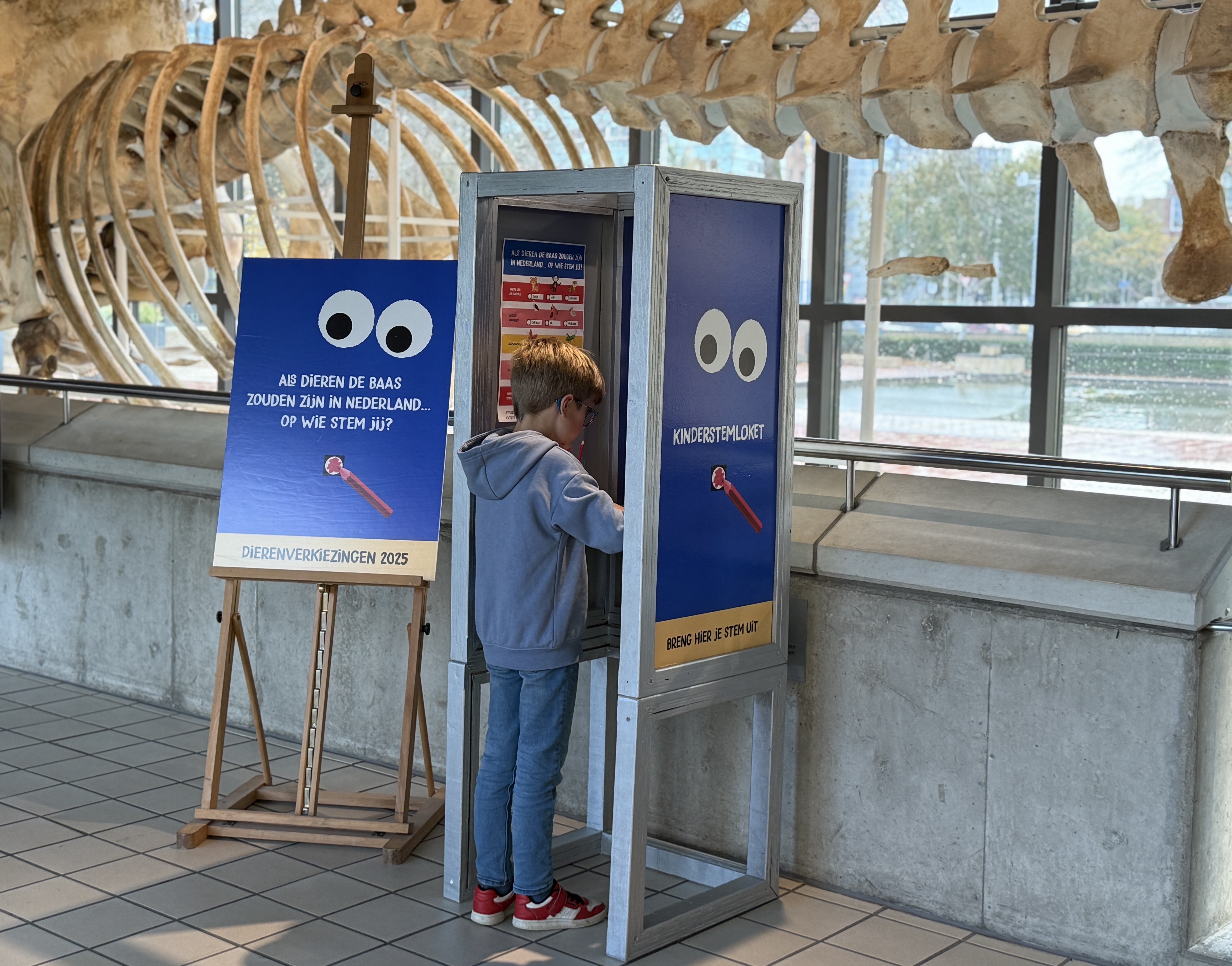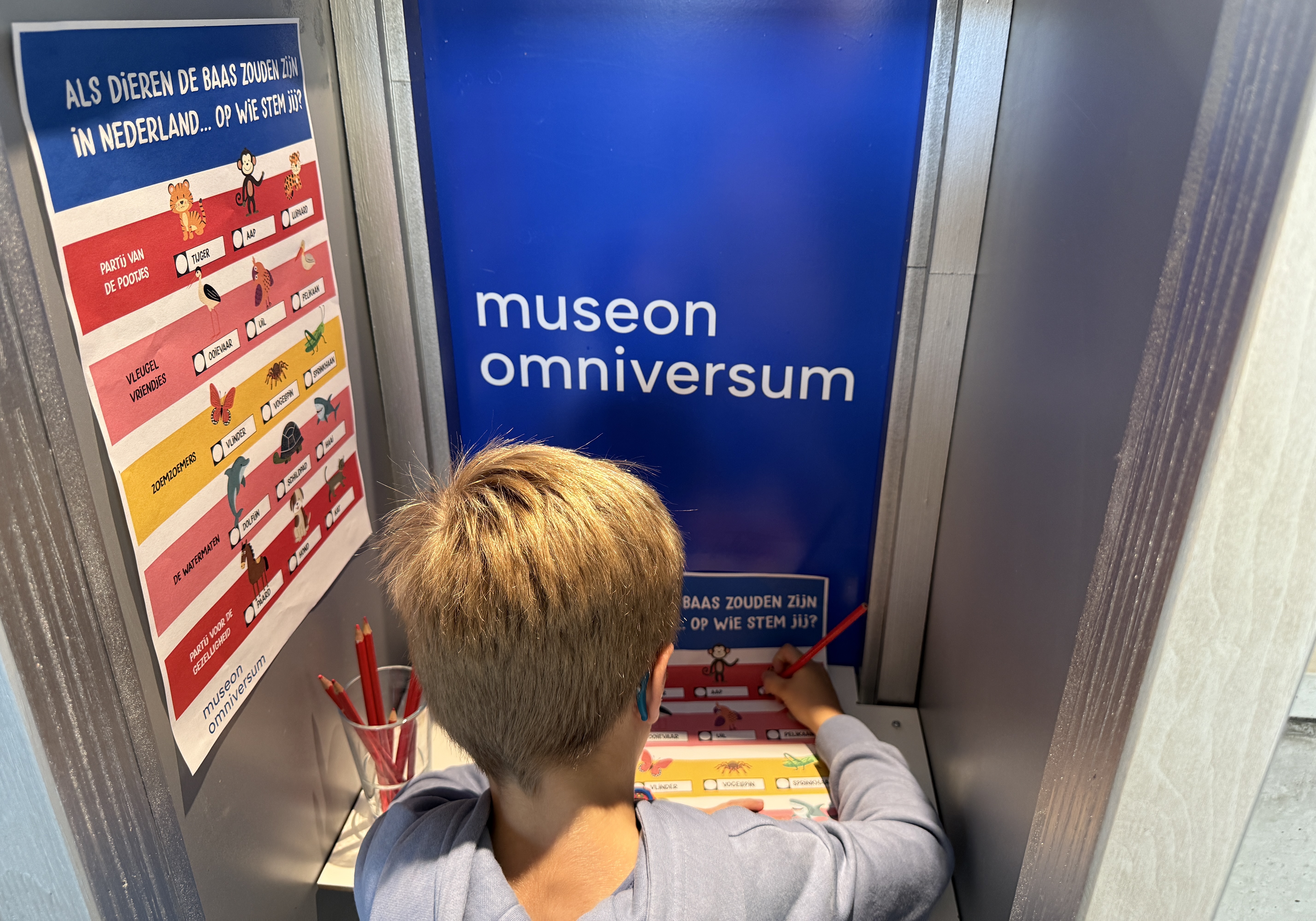 Vanaf 24 oktober kun jij bij Museon Omniversum je eigen stem uitbrengen. In een echt kinderstemhokje kies je welk dier volgens jou de baas van Nederland zou moeten zijn!