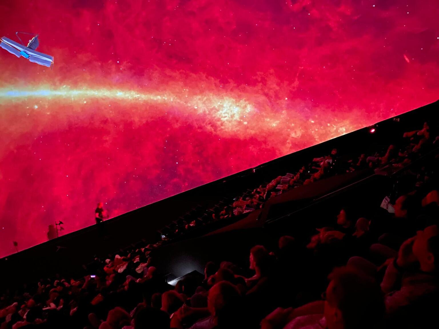 Je stijgt op vanaf het dak van de Dome, ziet de aarde langzaam kleiner worden en vliegt langs het International Space Station, Jupiter, Mars en zelfs voorbij het zwarte gat. Samen verken je de planeten, melkwegstelsels en satellieten die onze ruimte vullen.