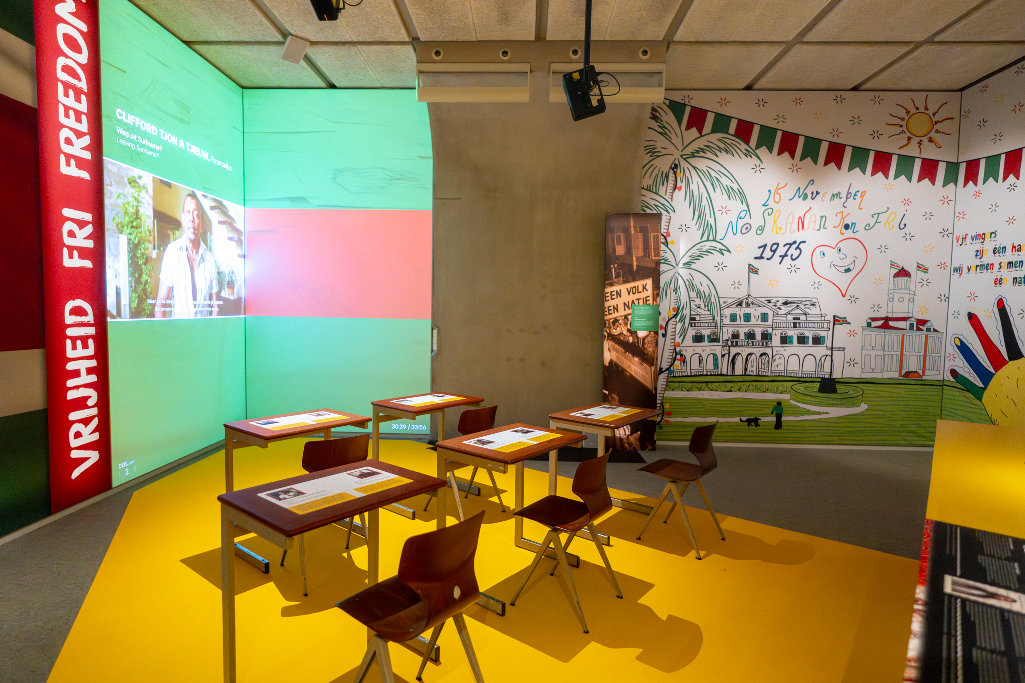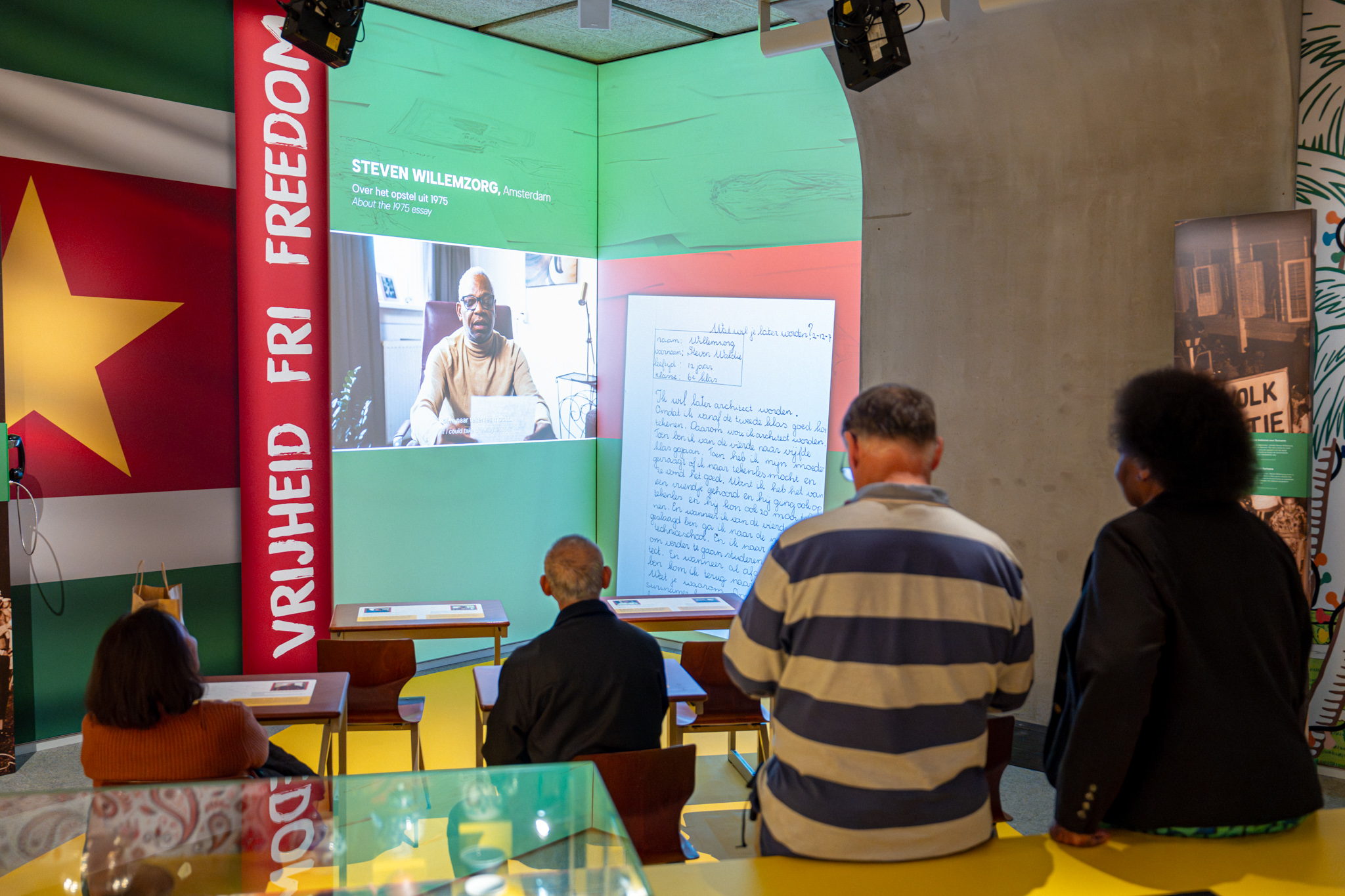 Voor de huidige tentoonstelling ging het museum in zowel Suriname als Nederland in gesprek met een aantal makers van toen. Hoe kijken zij terug op de Onafhankelijkheidsdag? En zijn hun dromen werkelijkheid geworden? Deze bijzondere videoportretten vormen het hart van Kinderen van de Onafhankelijkheid.
