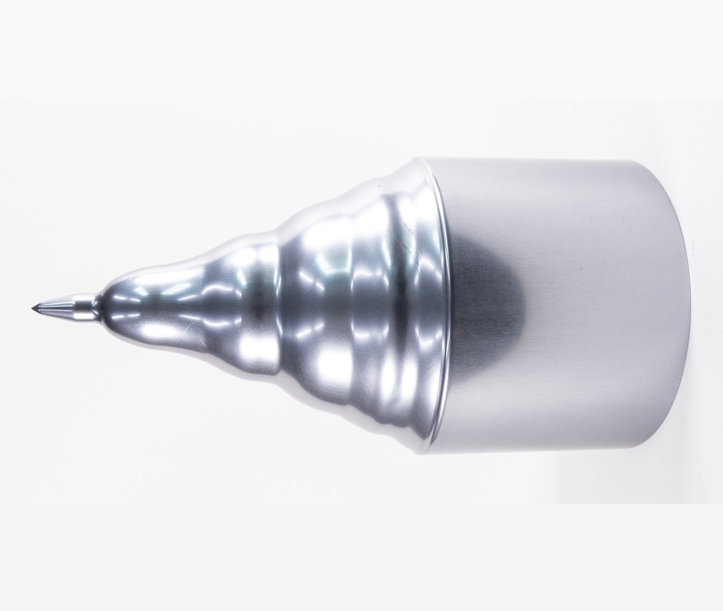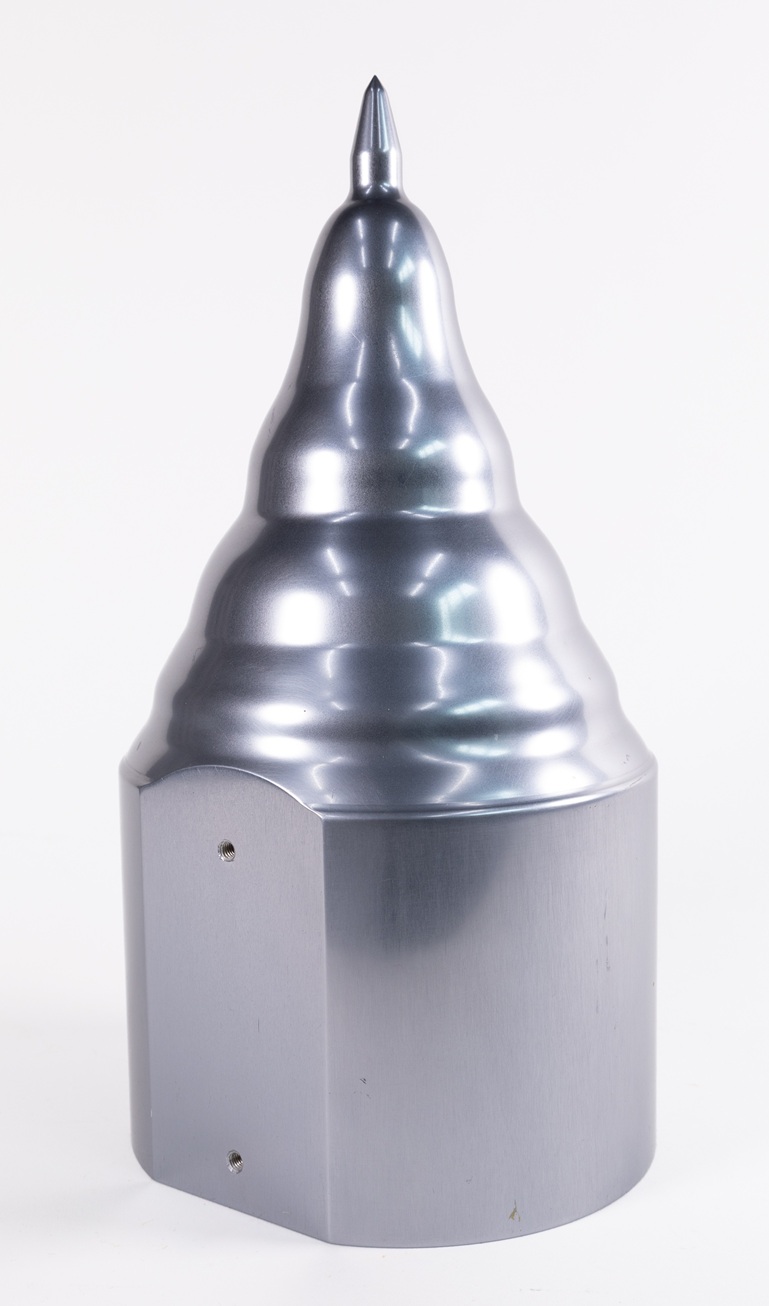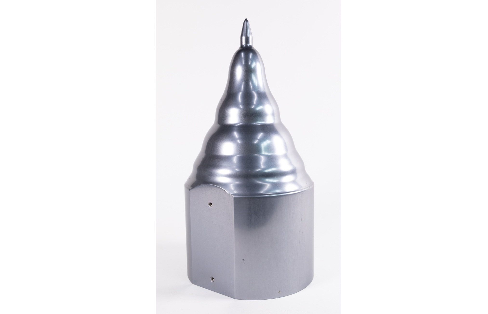 Dit kegelvormige ding is 32 cm hoog en heeft een doorsnede van 15cm. Het is gemaakt van metaal en weegt bijna 8 kg! Door het puntige uiteinde lijkt het iets te zijn waarmee men kan stansen. Maar dat weten we niet zeker...